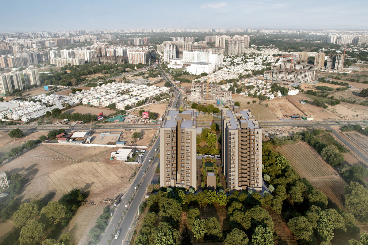 Shubham Anthem is situated in the most fast developing west end of the city - Shela. This area is seamlessly connected by large road infrastructure from all sides. Surrounding Shubham Anthem you will find all the necessities from to the luxurious Clubs, restaurants, community halls, townships, schools, hospitals to other day to day conveniences.